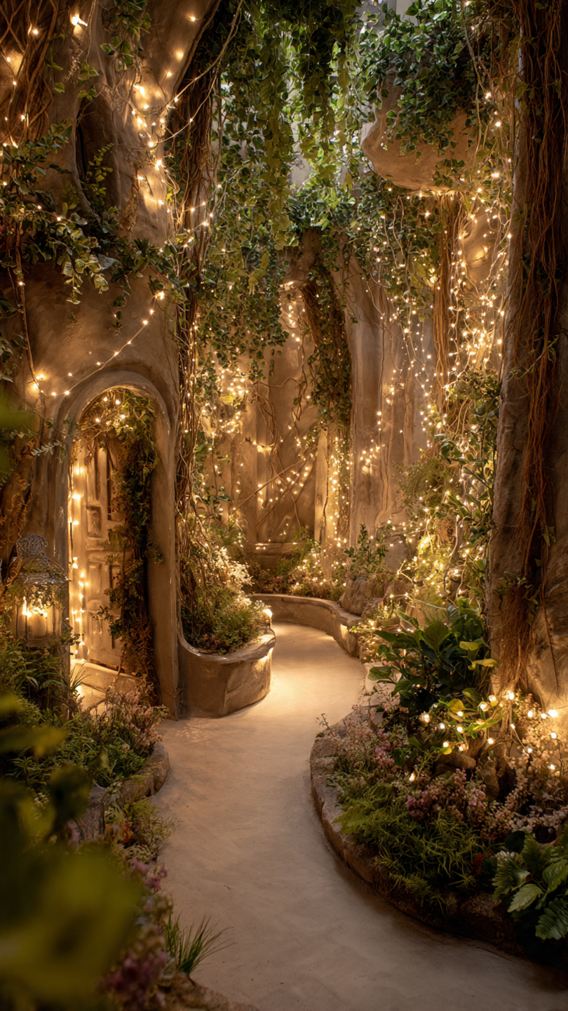 Fairy lights aren’t just for horizontal spaces—vertical gardens or trellises can become magical focal points.