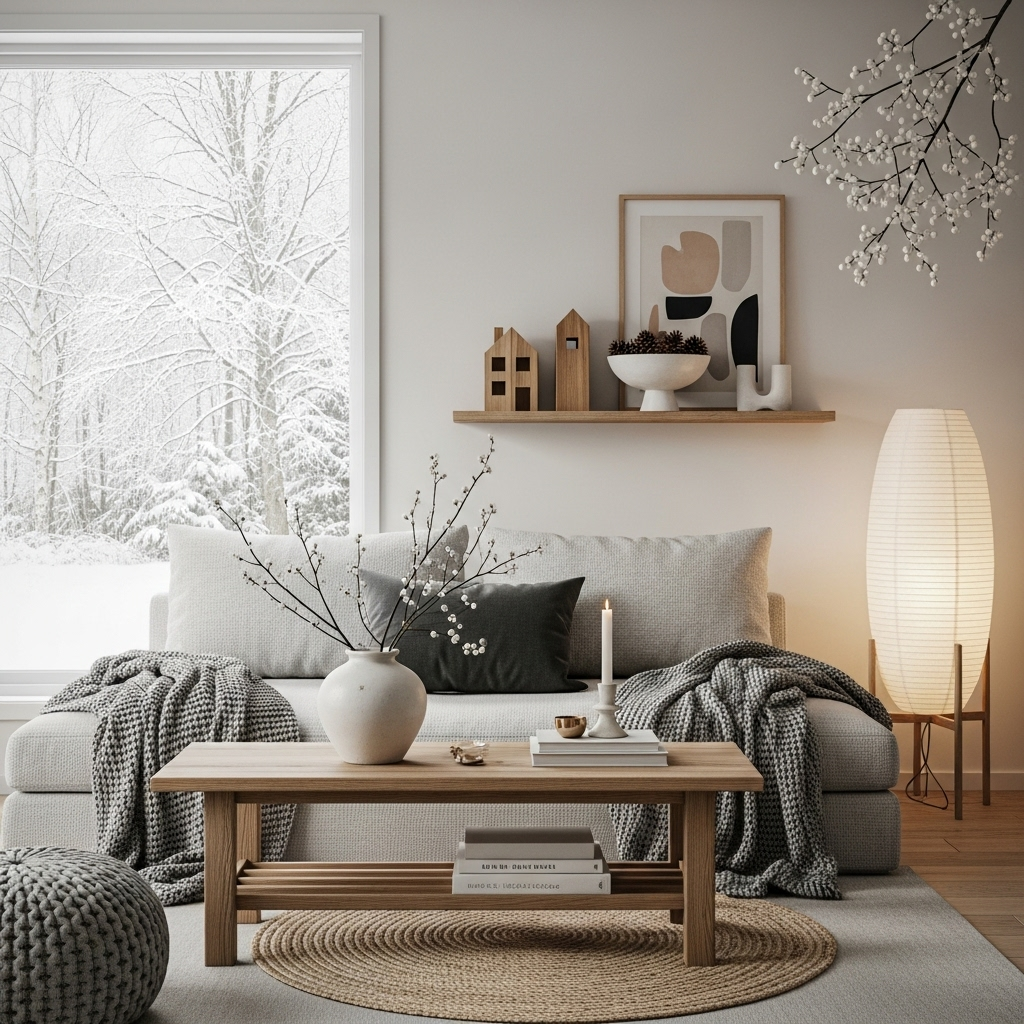 Japandi Winter Decor with Natural Wood