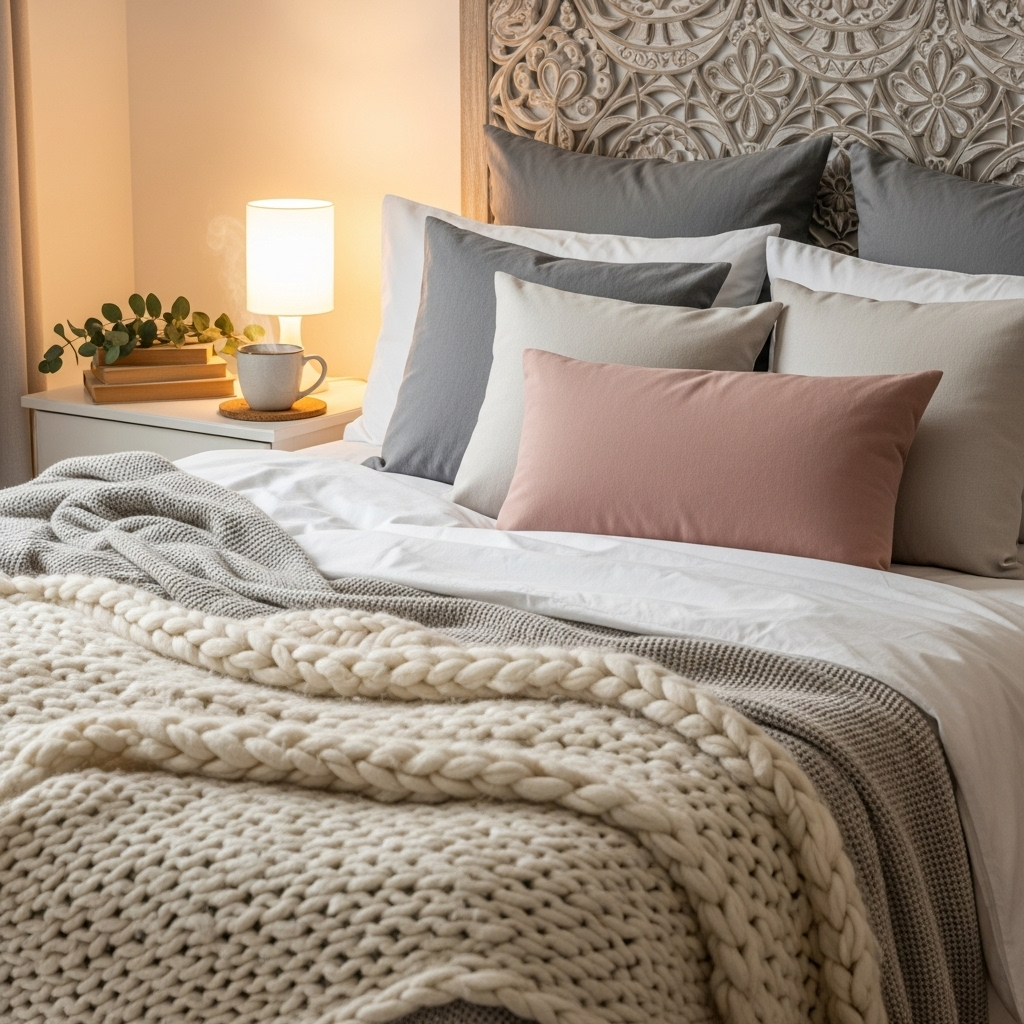 Layering bedding is essential for achieving ultimate coziness in the bedroom during winter months. Start with a breathable base, then add a duvet, quilt, and several soft throws in varying textures to create depth and extra warmth without feeling too heavy.