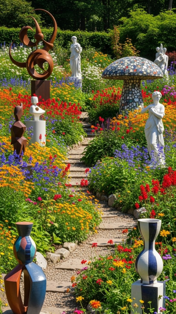 4. Garden Sculptures as Focal Points in a Color-Filled Landscape