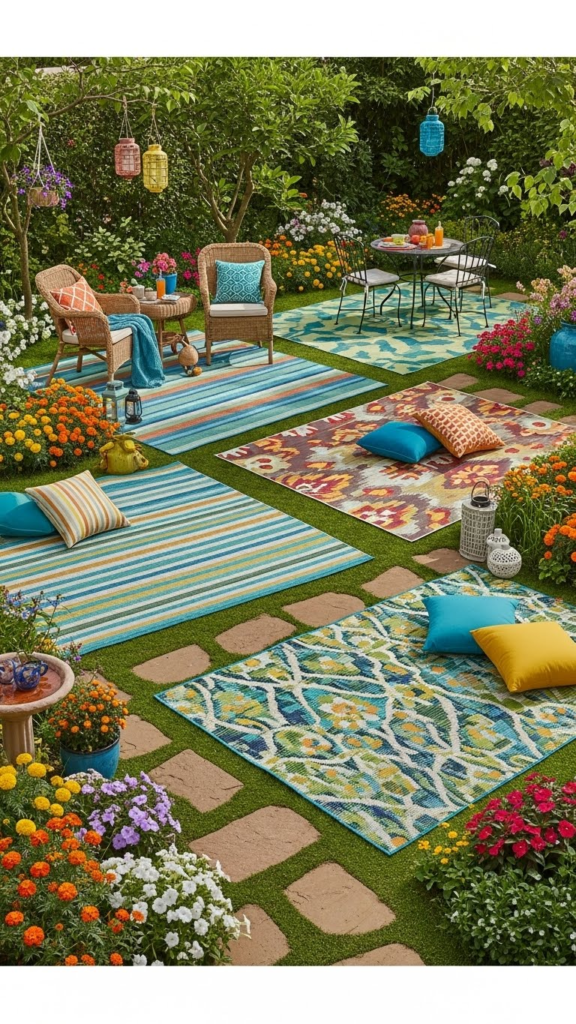 8. Colorful Outdoor Rugs to Define Garden Zones