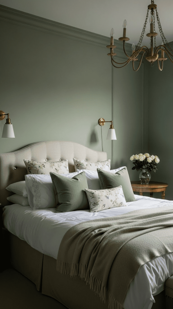 Olive green provides a grounded, masculine romanticism that feels like a cozy forest cabin in the middle of the city.