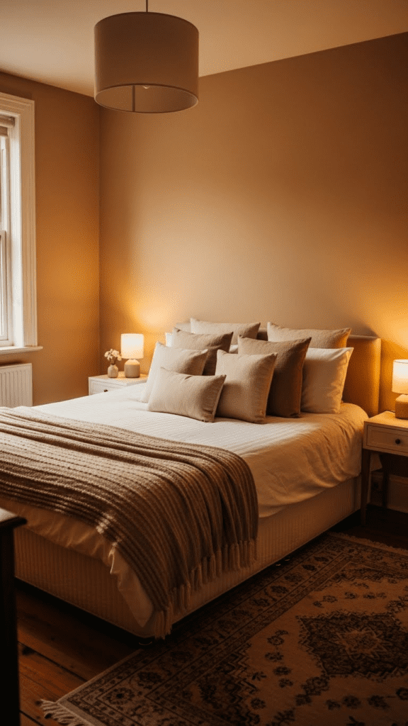 Terracotta brings an earthy, Mediterranean heat to the bedroom that feels grounded and deeply passionate.
