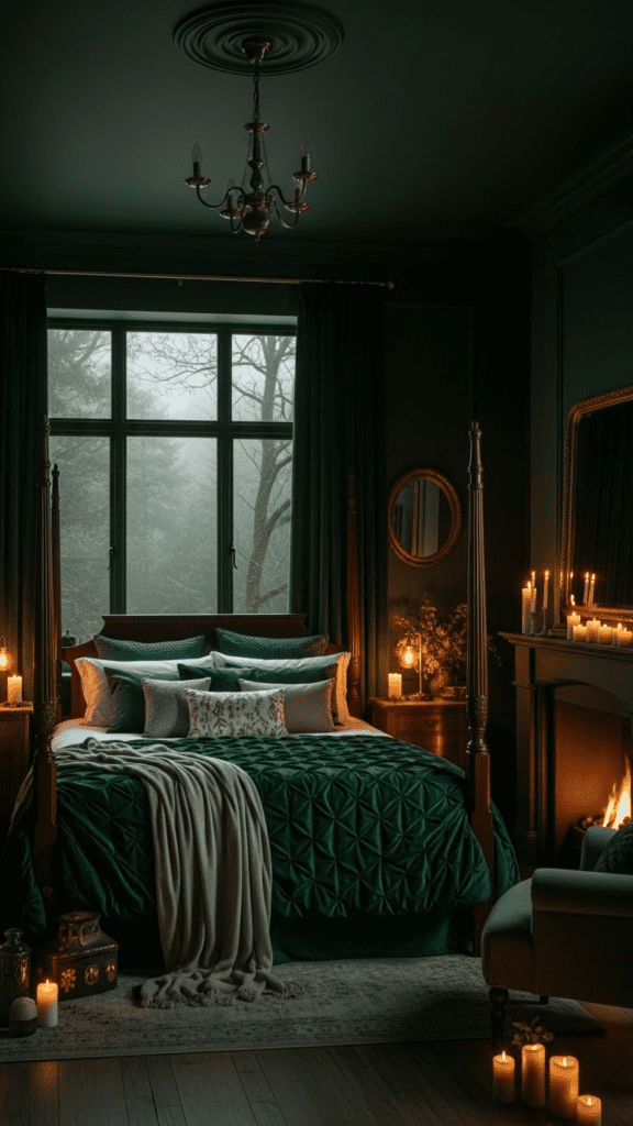Forest green is the ultimate “cocoon” color, wrapping the room in a dark, natural shade that feels protective and lush.