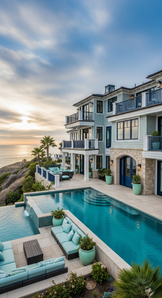 Introduce these colors through throw pillows, glass vases, or abstract artwork that mimics the movement of ocean waves. This palette ensures your home feels connected to the water without appearing overly themed or dated.