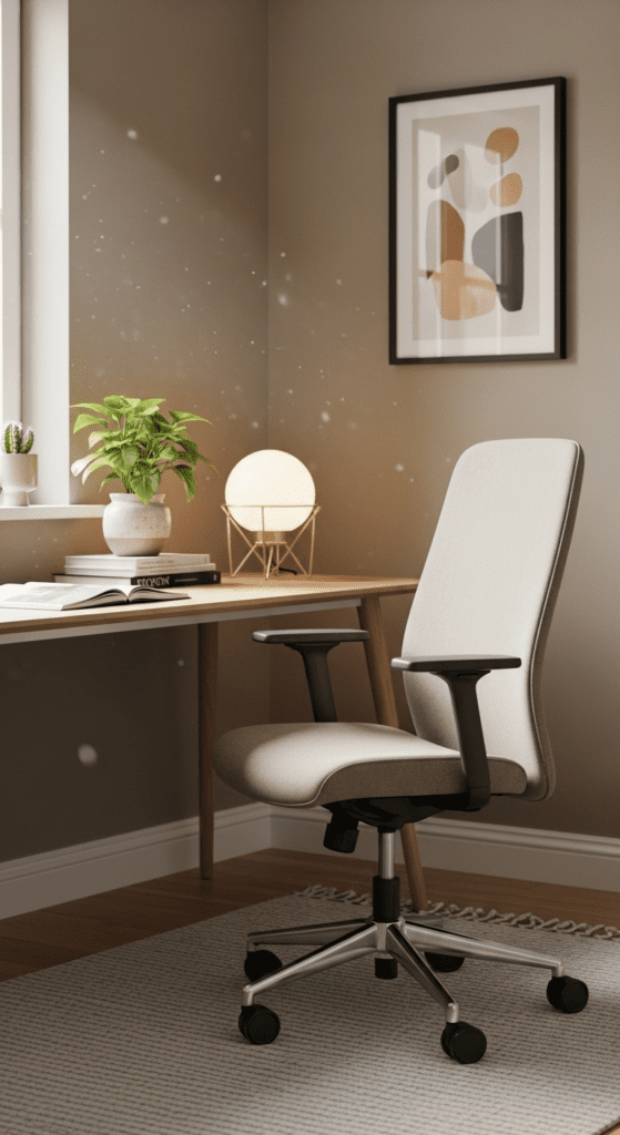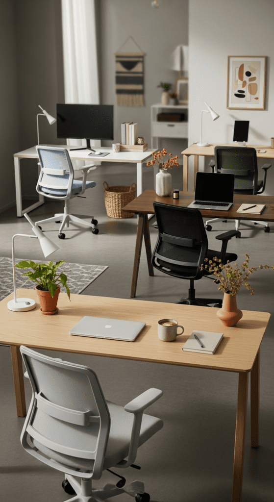 Comfortable chairs support long work hours. Choose designs with clean lines and neutral tones.
