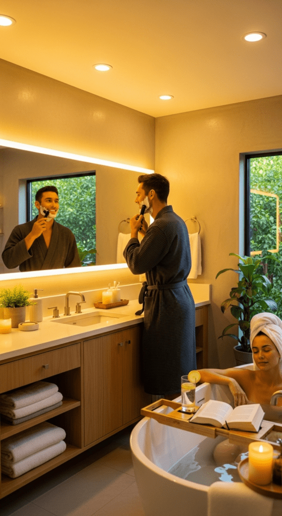 Thoughtful planning of the layout transforms a standard bathroom into an efficient and enjoyable space for a couple, promoting ease and reducing morning conflicts.