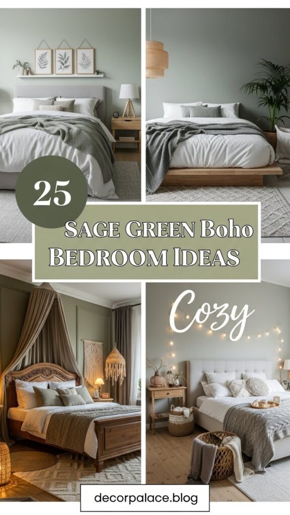 25 Sage Green Boho Style Bedroom Ideas