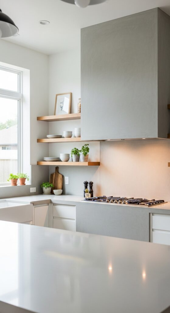 Your kitchen’s color palette sets the mood. Light neutrals like white, cream, and gray keep things airy and timeless, while also making the space feel bigger.