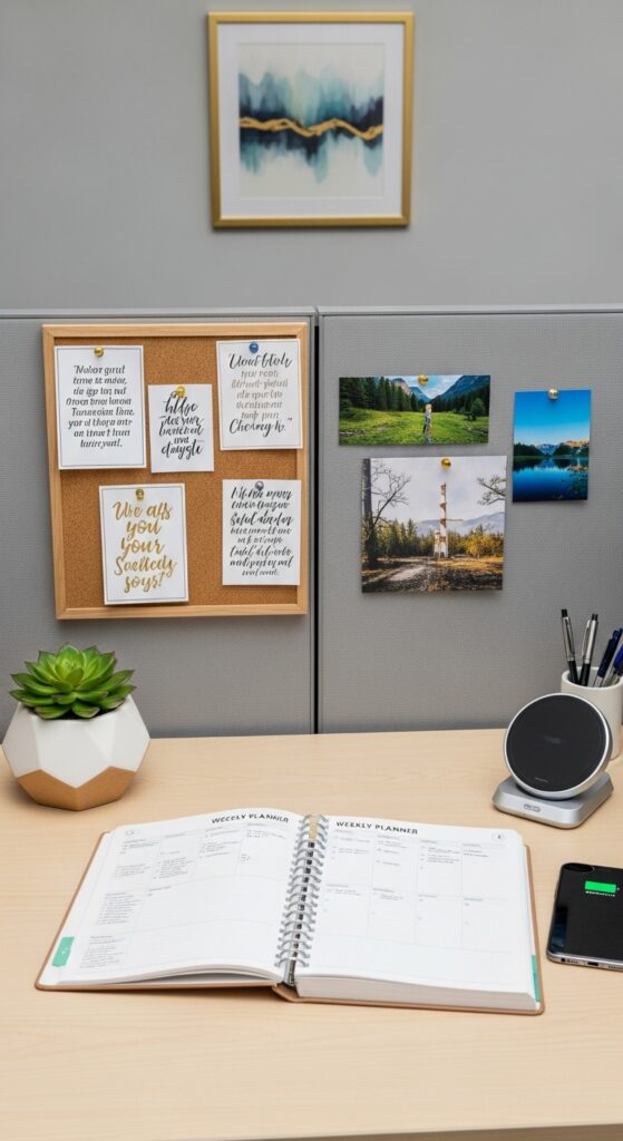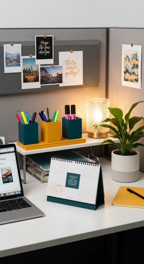 Choose a calendar that reflects your style—minimalist, colorful, or inspirational—with designs that blend with your overall color scheme. This simple accessory makes your cubicle feel more curated.