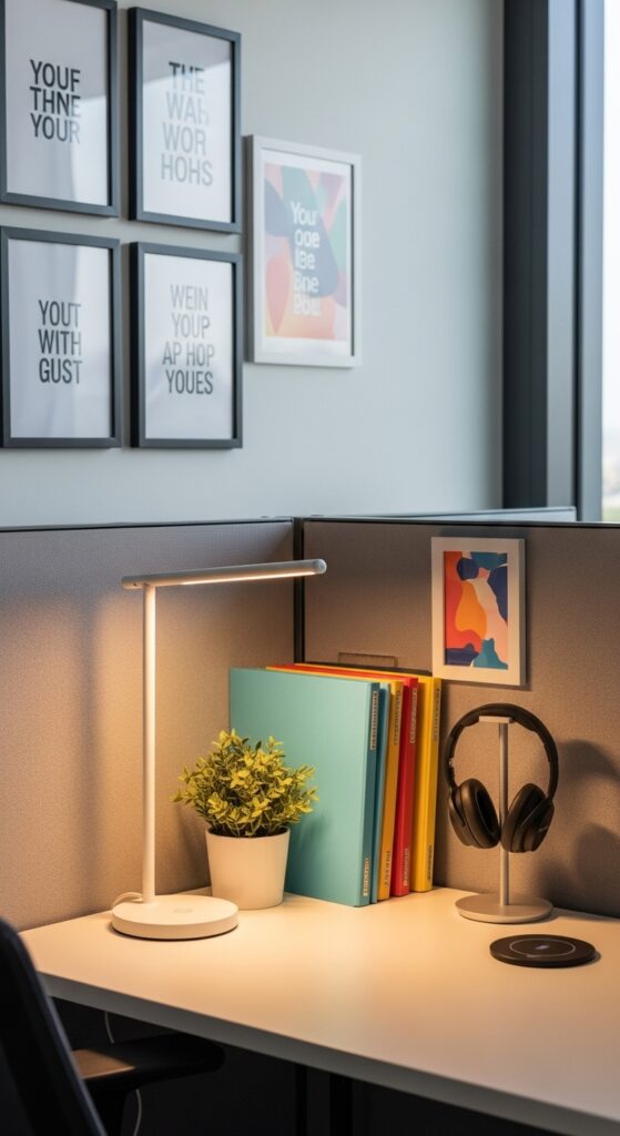 Framed quotes offer daily inspiration while keeping your cubicle visually appealing. Choose clean fonts and neutral frames for a polished, professional look.