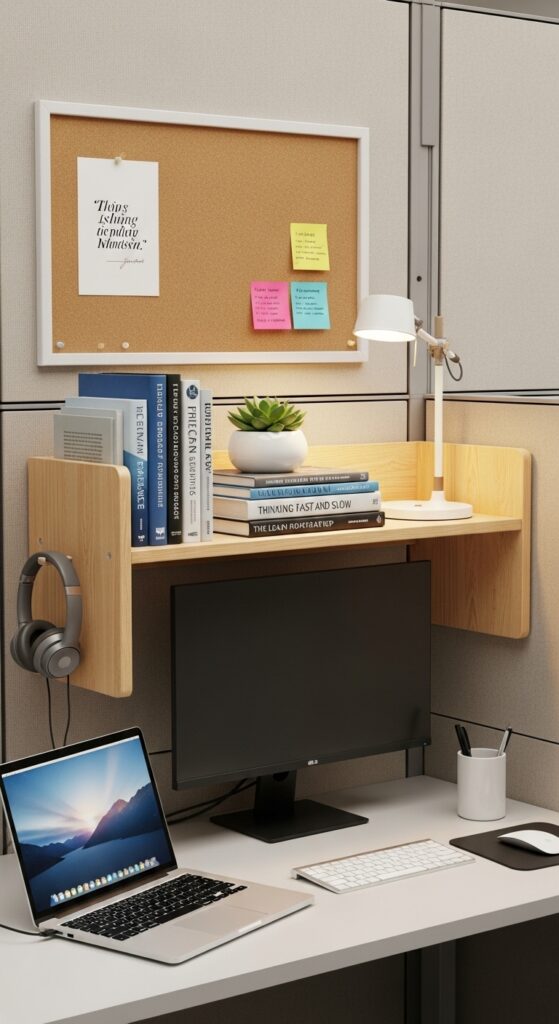 A compact desk shelf helps maximize vertical space, which is essential in small cubicles. It keeps your desk surface tidy while adding visual interest.