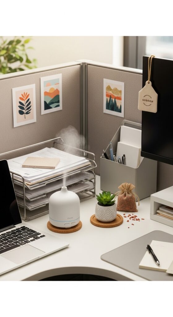 A gentle scent can refresh your space and uplift your mood without overwhelming coworkers. Opt for desk-friendly diffusers or scent sticks in calming fragrances like lavender, lemon, or eucalyptus.