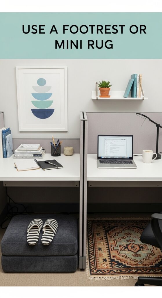 A cozy footrest or mini rug adds comfort and warmth to your workspace. It makes long hours at your desk feel more relaxed and inviting.