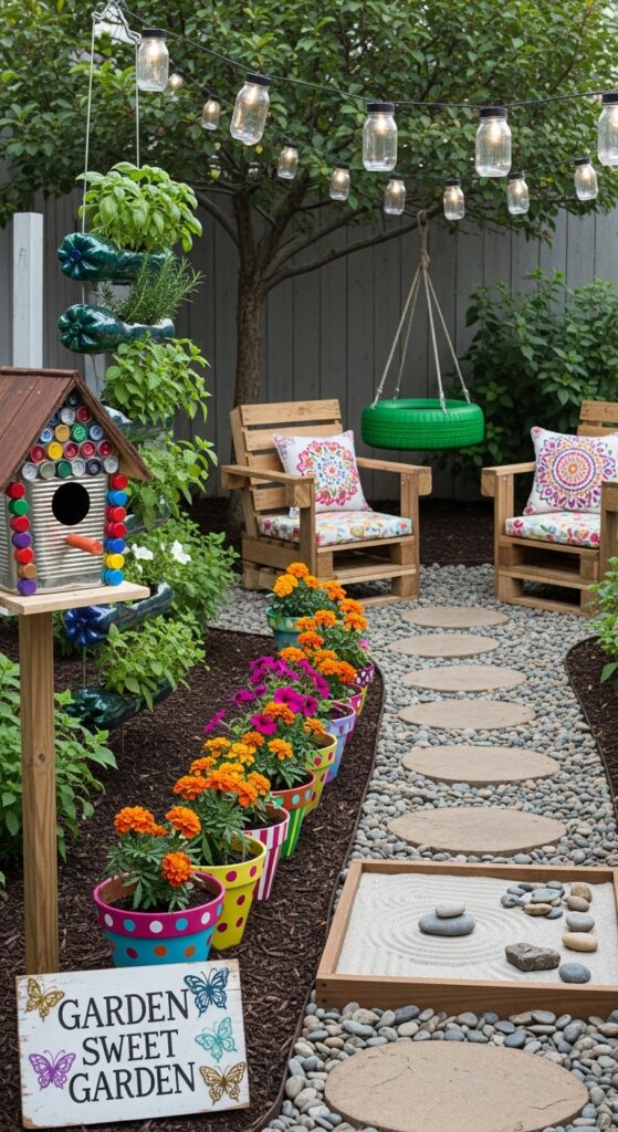 Old tires can become vibrant planters with a coat of paint, and tin cans can be transformed into whimsical lanterns. Look for inspiration in everyday objects.